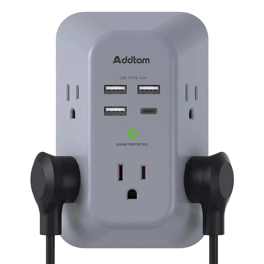 5 Outlets & 4 USB Ports | 1800J Surge Protection for Home & Travel