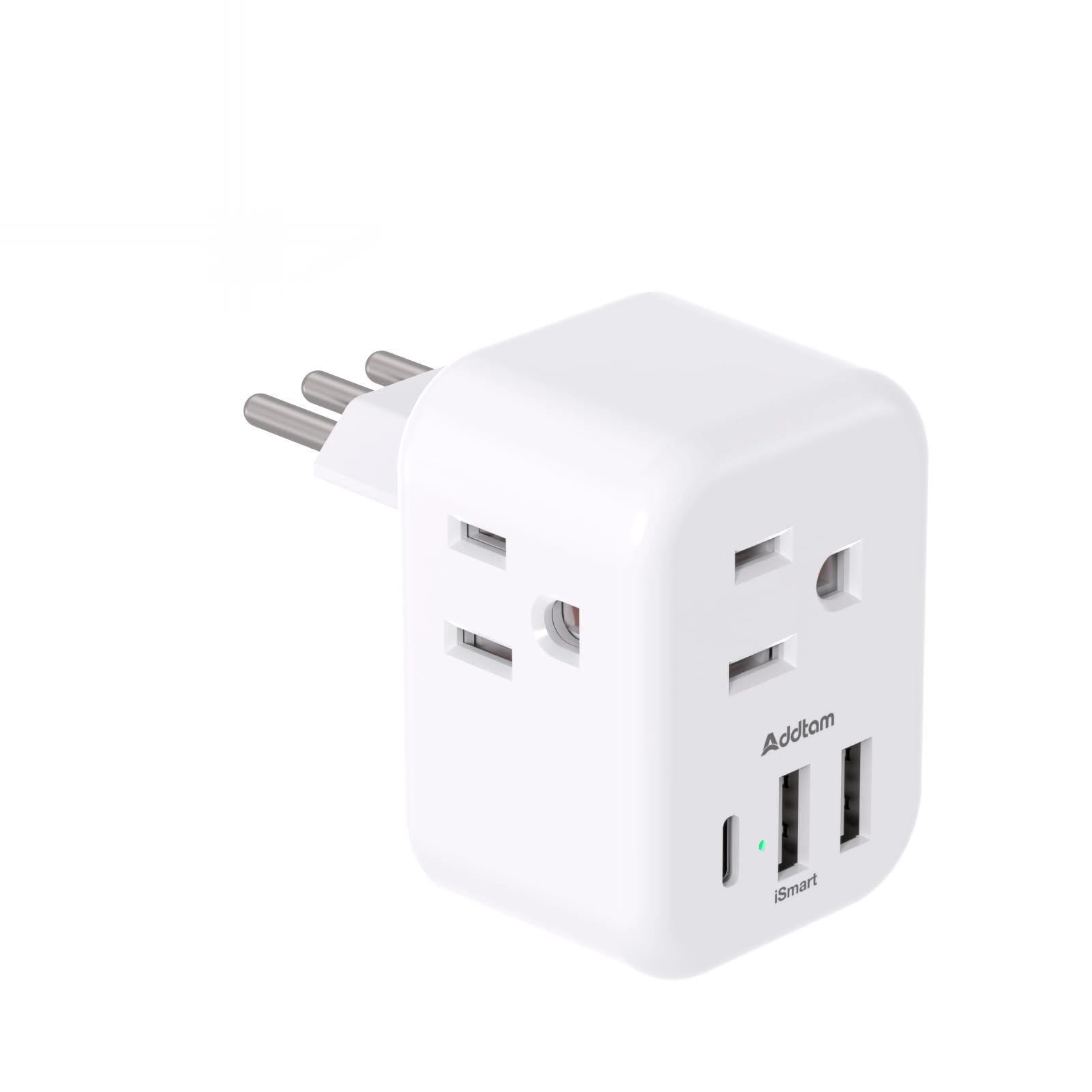 Type L Plug with 3 USB Ports | For Italy, Uruguay & Chile