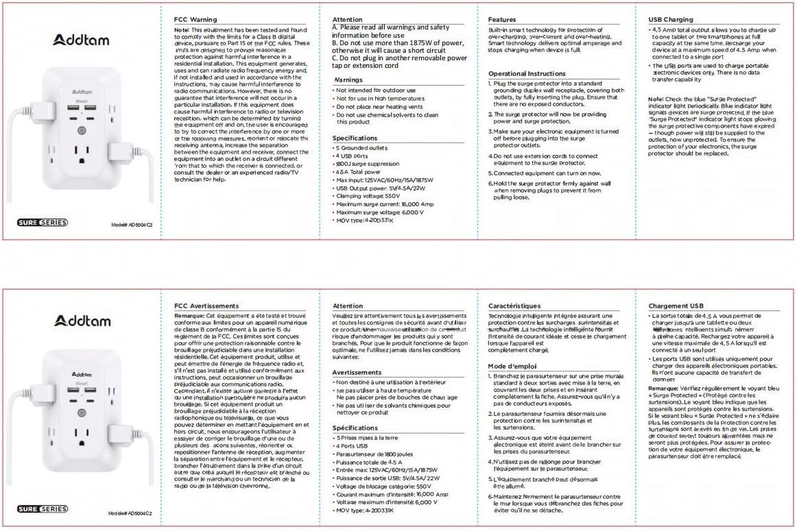 【Super Safety】- ETL Certificates. This power strip has overload protection, short-circuit protection, over current protection, over-voltage protection and overheating protection. It will automatically cut power to protect connected devices when voltage surge is overwhelming. Combined with fire-resistant casing- keeping you and your devices completely safe