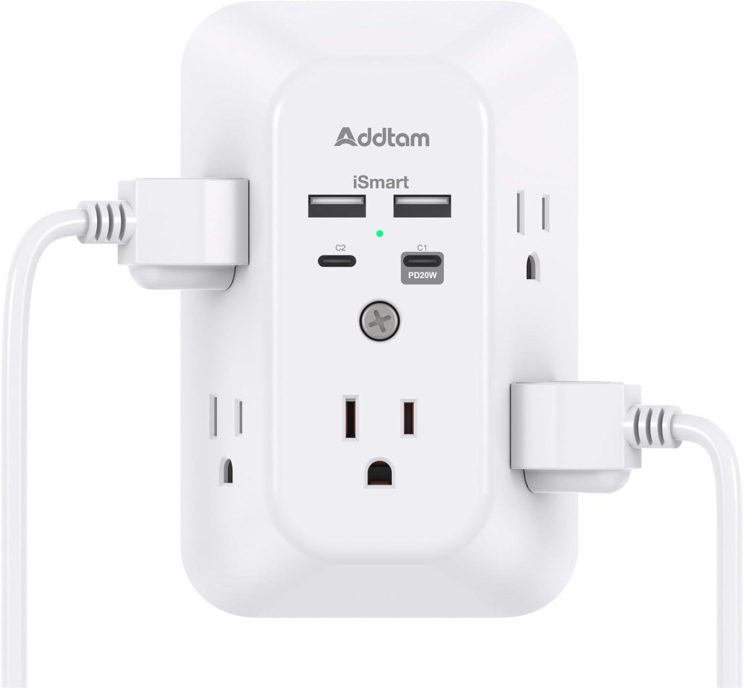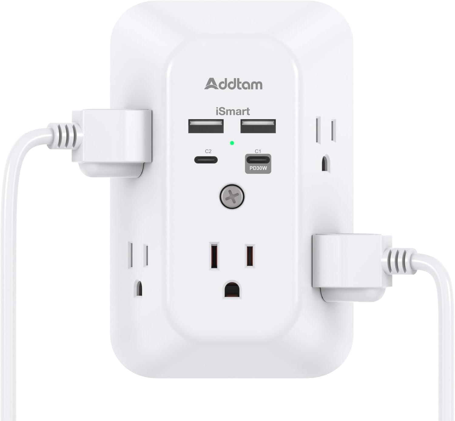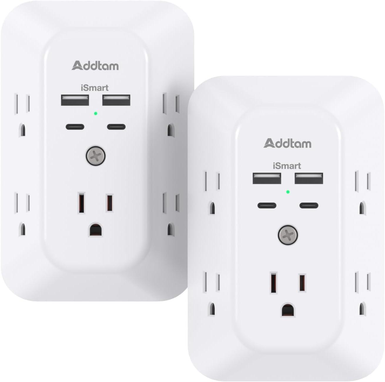 【9 IN 1 Function USB Wall Outlet】- Fit duplex outlet perfectly, just plug in to use. Please NOTE: For some outlets, the black plastic prong can be cut off before using. You get 5 AC outlet splitter (3 sides) with wide space in between; 4 USB charger ports; 1800 joules surge protector protect electronics by improving your power quality