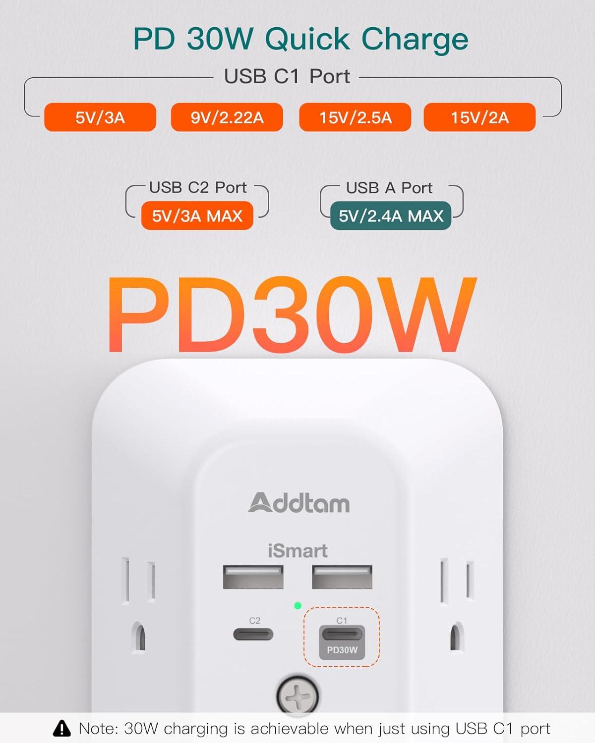 【USB- C Fast & Smart Charge】- 4 USB ports total 4.5 A, each USB A port features 2.4A Max output. USB C charging port features 3A MAX. Built- with smart technology, detecting charging devices and deliver optimal charging speed automatically, compatible with most USB devices. NOTE: The UCB-C port doesn't support any other devices which need 14~22V charging voltage