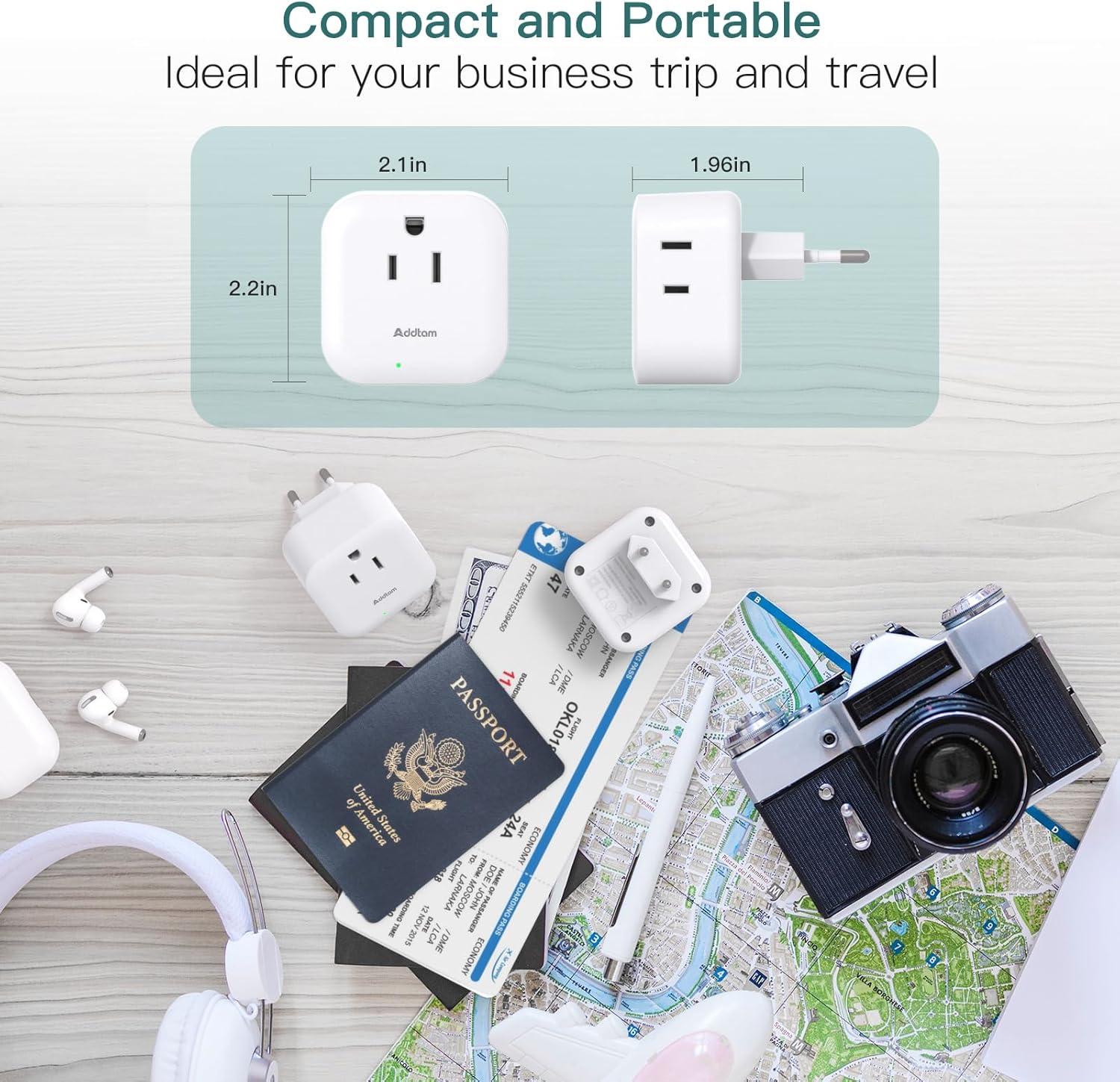 【Travel Essentials with Compact Design】- This International power adapter is mini size:2.1*2.1*1.1in. This slim and compact plug adapter is the ideal travel accessory, offering convenience without taking up much space in your luggage. Indicator can let you know the power of this European travel plug adapter is on/off. The travel power adapter with NO surge protection, it's absolutely a must have Travel and Cruise Ship accessories.