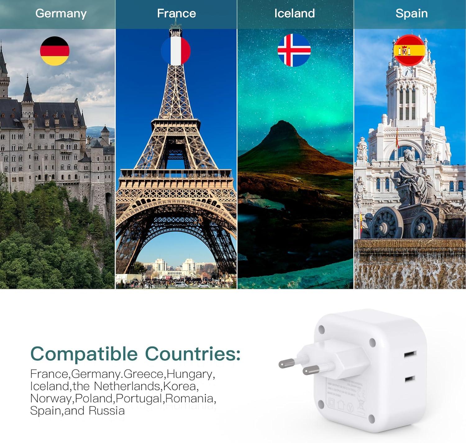 【US to Europe Travel Plug Adapter】- The italy travel plug adapter compatible with most European countries such as Austria, Belgium, Croatia, Denmark, Finland, France, Germany, Spain, Turkey, Iceland, Italy, Israel. More country list can be checked in description. (NOTE: Some European nations, such as the UK, Ireland, and Scotland, may require a Type G adaptor; please purchase our UK adapter before traveling.)
