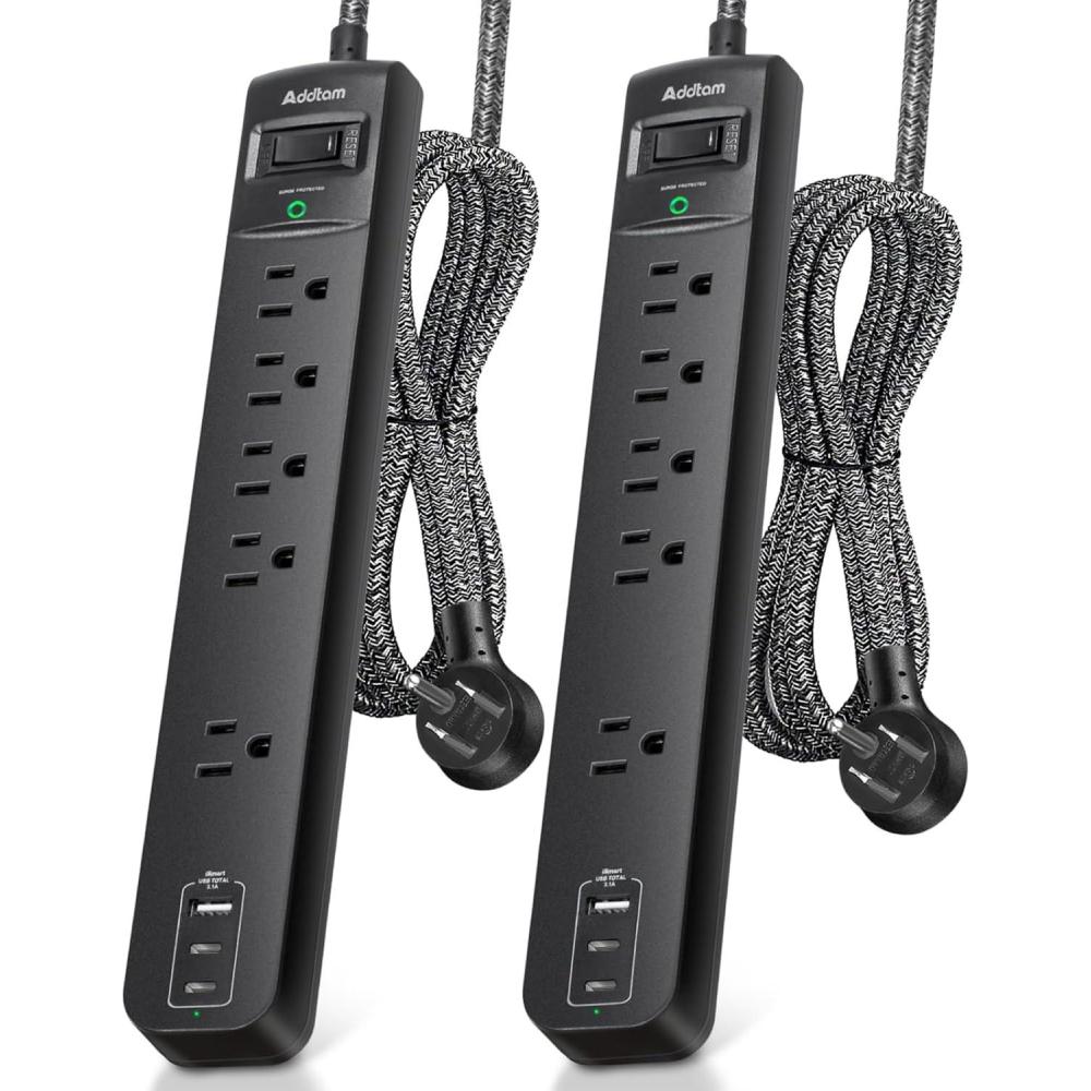 image2 Pack Power Strip Surge Protector  5 Widely Spaced Outlets 3 USB Charging Ports 1875W15A 6Ft Braided Extension Cord Flat Plug Overload Protection Wall Mount for Home Office Dorm Room Essentials6 FT