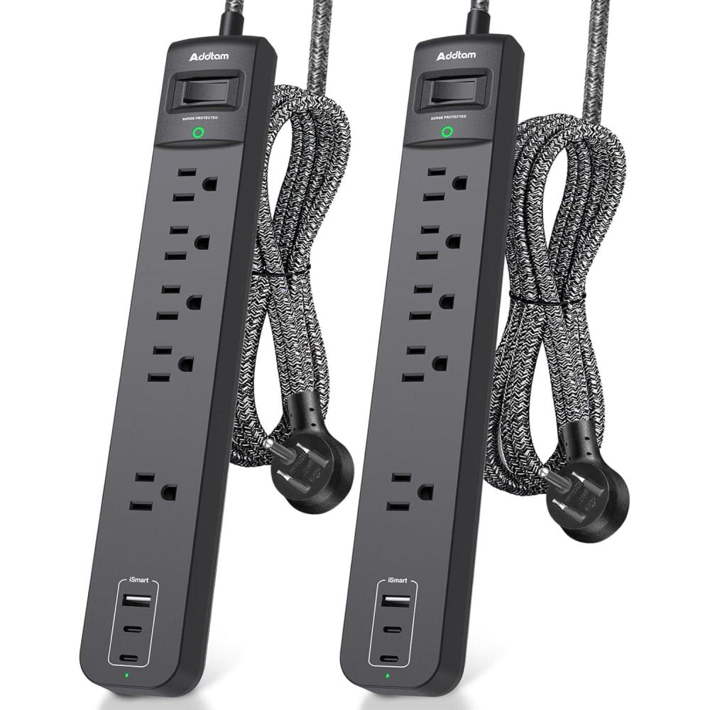 2 Pack Power Strip Surge Protector – 5 Widely Spaced Outlets 3 USB Charging Ports, 1875W/15A 6Ft Braided Extension Cord, Flat Plug Overload Protection, Wall Mount for Home Office Dorm Room Essentials(25 FT)