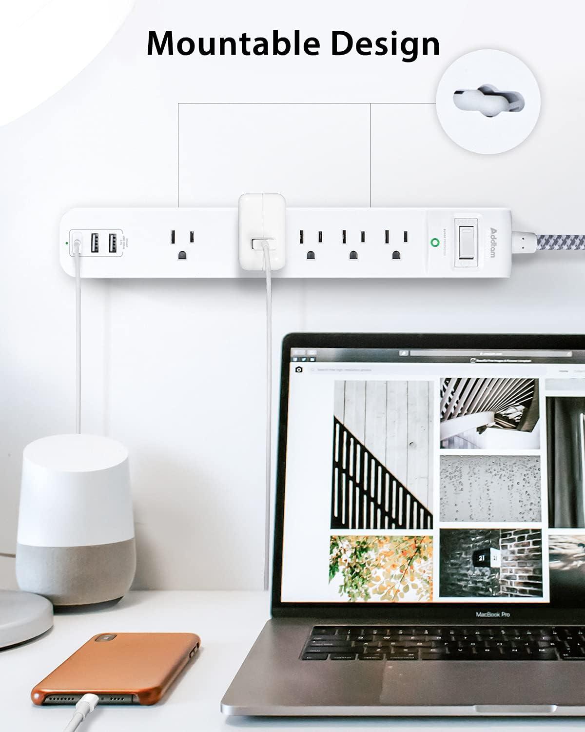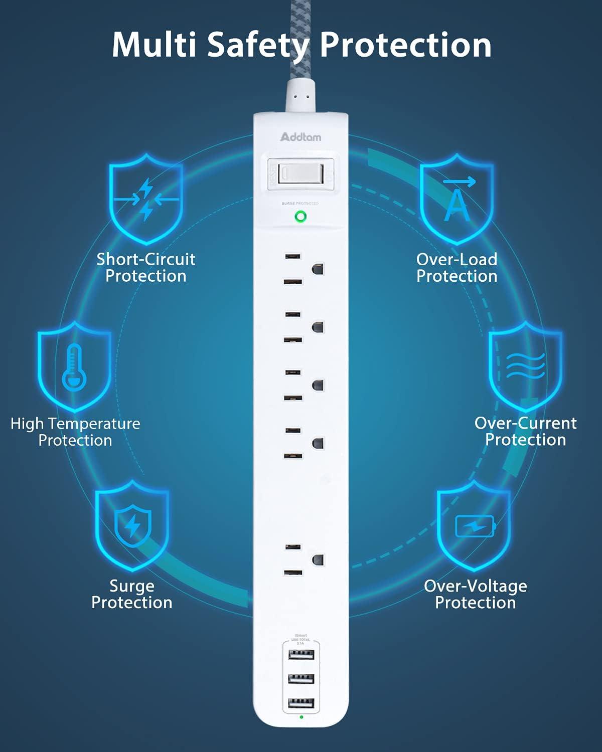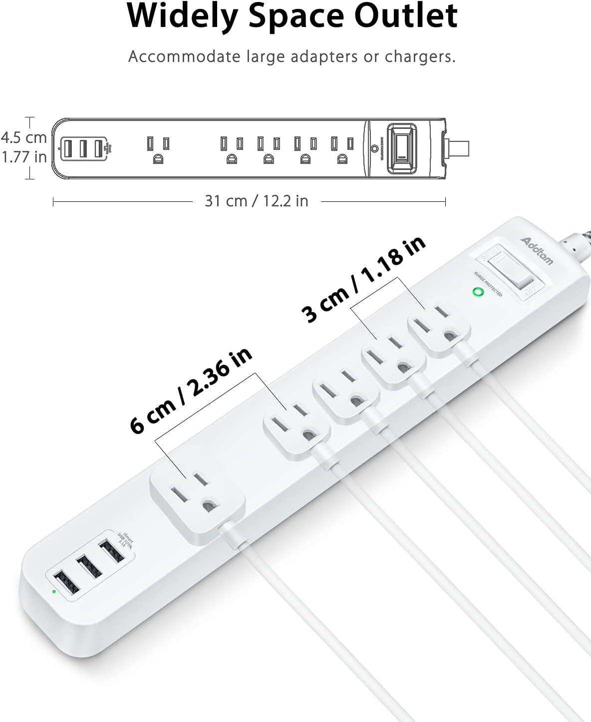 【Power Strip with USB】 – This surge protector with 3 USB charging ports provide 3.1A/15.5W in total. Built-in smart charging technology that detects and deliver an ideal input current of up to 5V/2.4A (the actual current is decided by the demand for the devices)