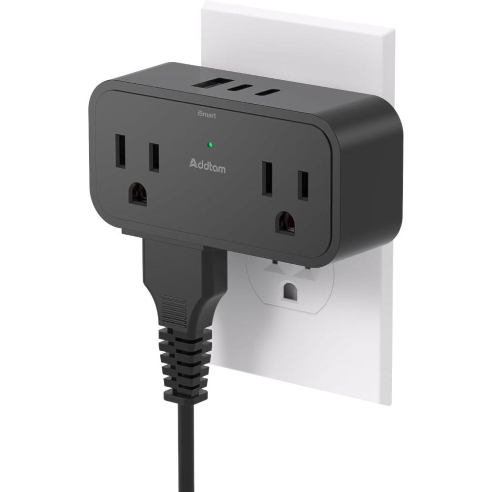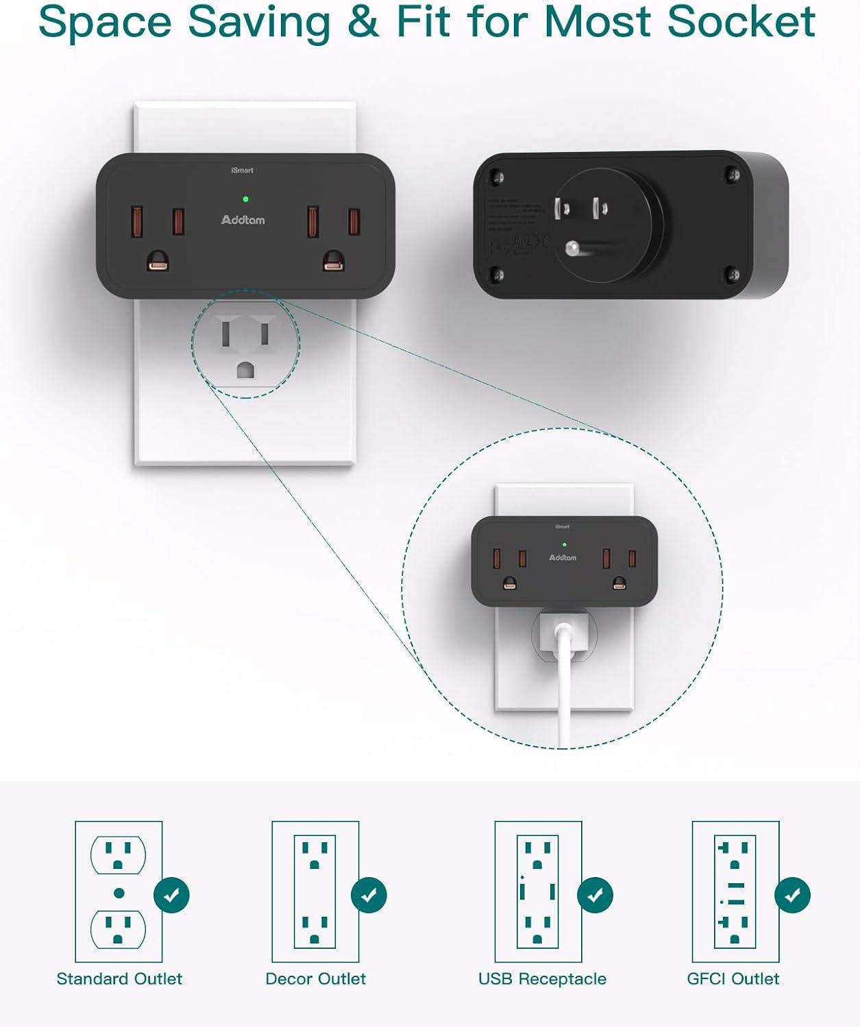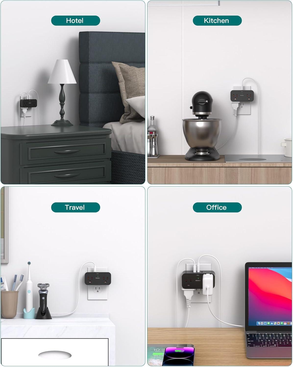 【Portable Size for Travel Esstentials】- With only 0.41lb lightweight design, low profile design multiple outlet wall plug can easily fit your suitcase, backpack and handbag; You can take this plug splitter anywhere such as home, hotel, office and college dorm room.