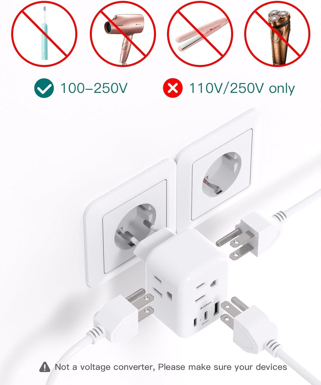 【Note】- This is NOT A CONVERTER. This plug adapter is only compatible for 110V to 250V wide voltage device, especially your hair dryer, straightener, electric toothbrush or razor need to support 110V to 250V dual voltage, otherwise you may need a power voltage converter