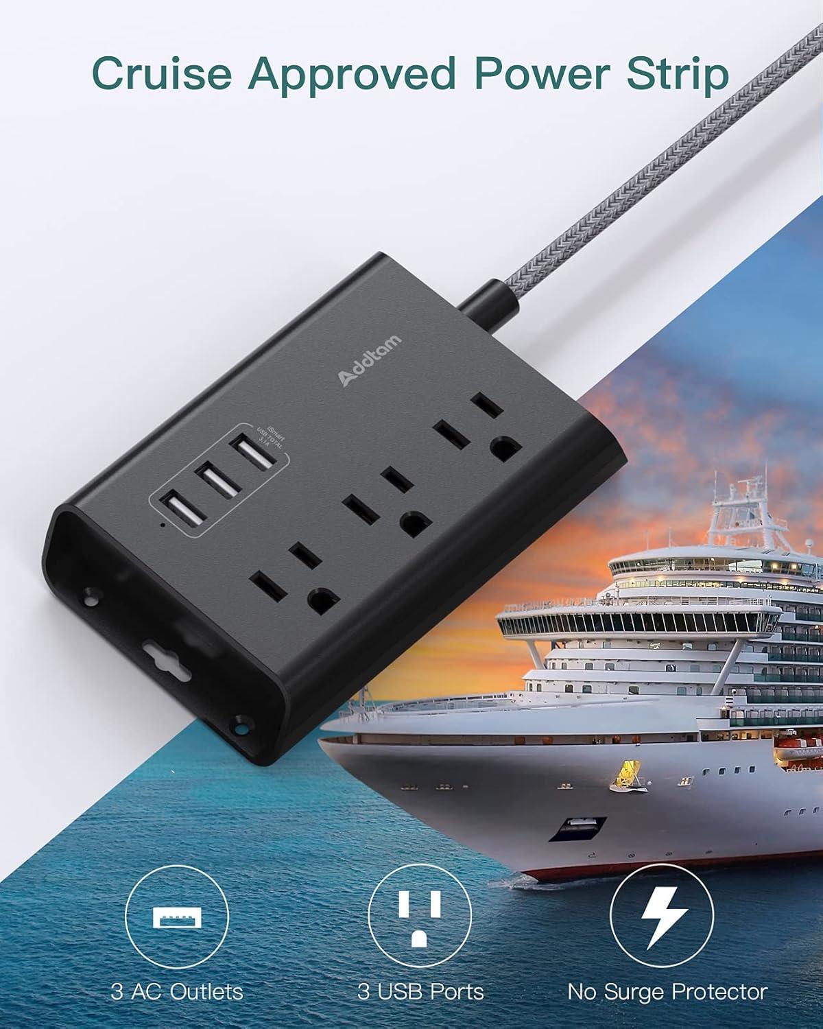 【Travel & Cruise Ship Must-Haves】This Slim power strip with mini size (4.3×3.1×1.8in) is easy to carry for travel. NO surge protector, it is cruise ship approved as the cruise lines require that power strips have no surge protection