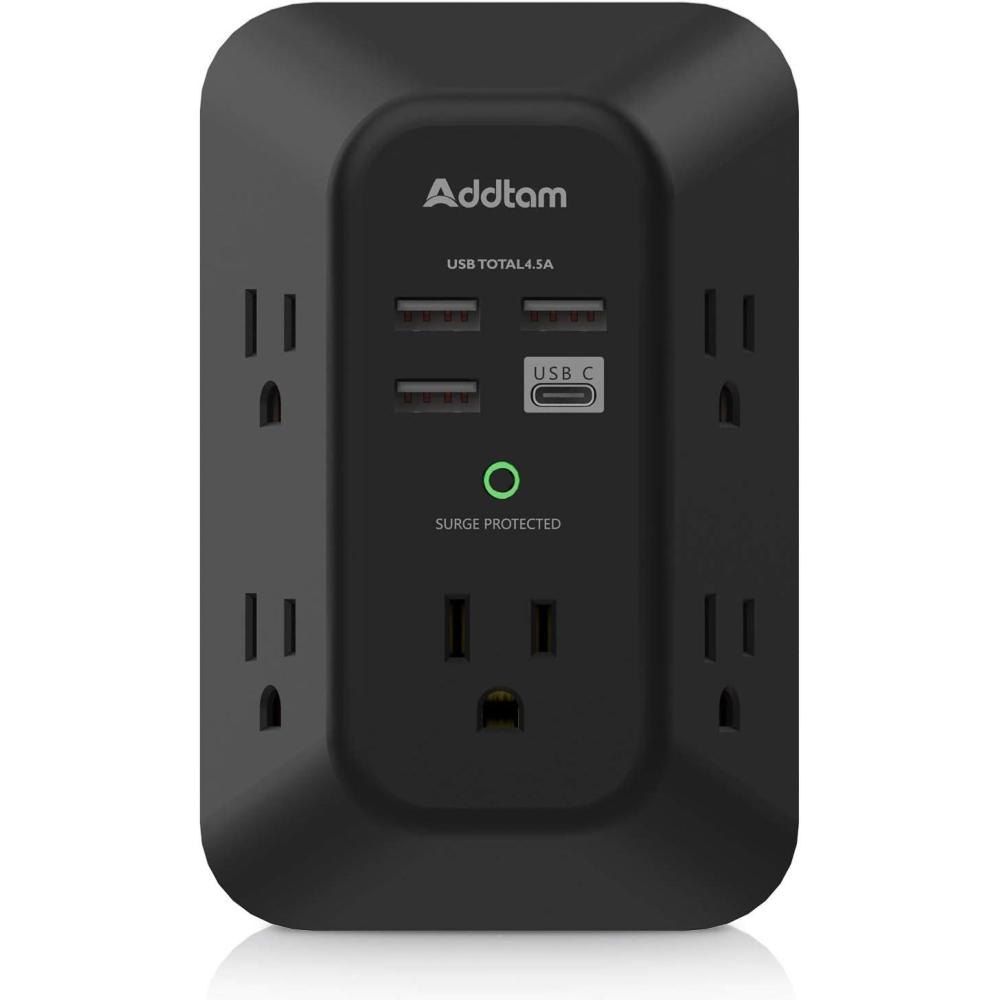 【9 IN 1 USB Wall Outlet】- You get 4 USB charging ports (2 USB C) and 5 wide-spaced outlets; 3 side design plug extender provides large space; removable screw and the plastic prong make it firmly attached to the outlets