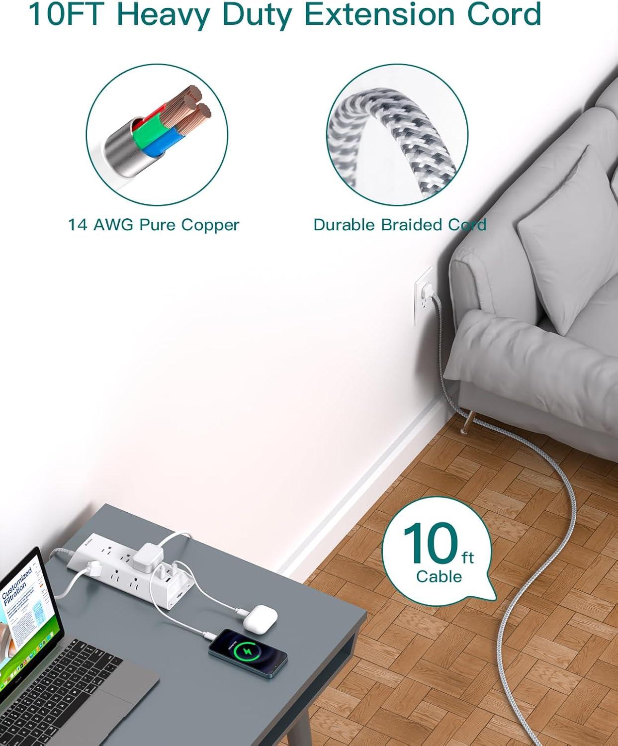 【Easy Mount on Wall and Desk 】- No need to measure and guess where you had to attach screws, mountable power strip with unique screw fixation design on both ends, allowing this white extension cord securely installed in various applications (4 screws included). It is easy to mount to walls, desks or furniture