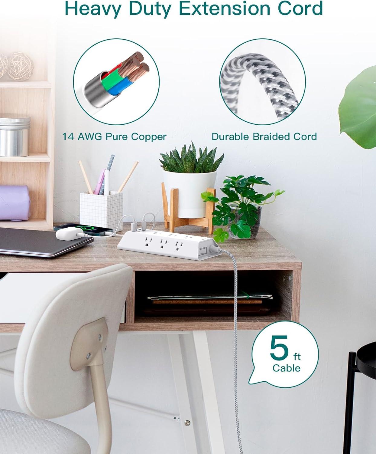 【2 x USB C Charging Station】- Added extra 2 USB C ports for your devices, the power strip with USB C port can charge up to 5V/3A. USB-A ports can charge up to 5V/2.4A Max. With smart charging technology, the outlet extender can auto-detect your devices and can reach faster charging efficiency, perfectly fit for your iPhone, iPad, tablet, bluetooth earphone etc