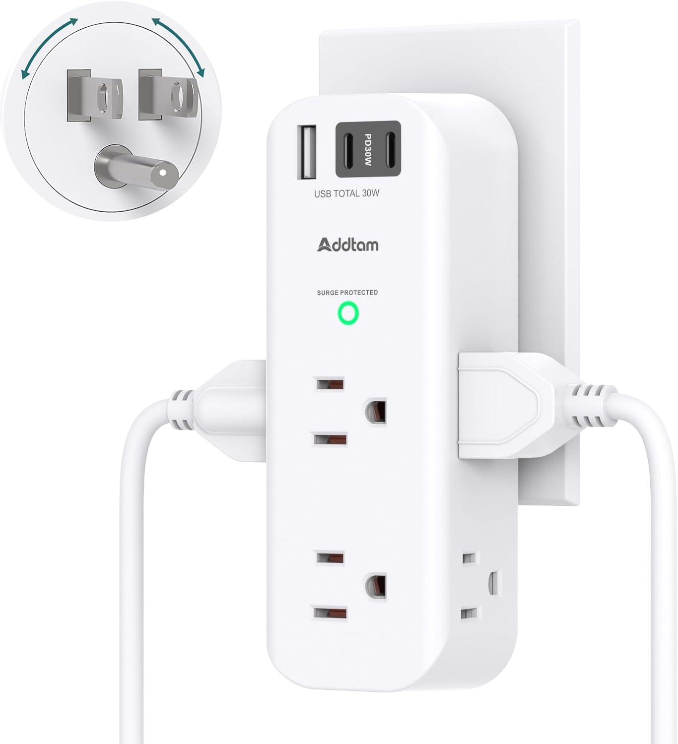【Safety Guaranteed】 – Certified by ETL. USB outlet splitter prevent your electric devices from over-current/over-charge/ short circuit/over-heated. Fire-resistant ABS shell (1382℉), and high-quality component can improve durability and safety. Addtam provides 90-day refund guarantee, worry-free 12-month warranty. 24h customer service supported.
